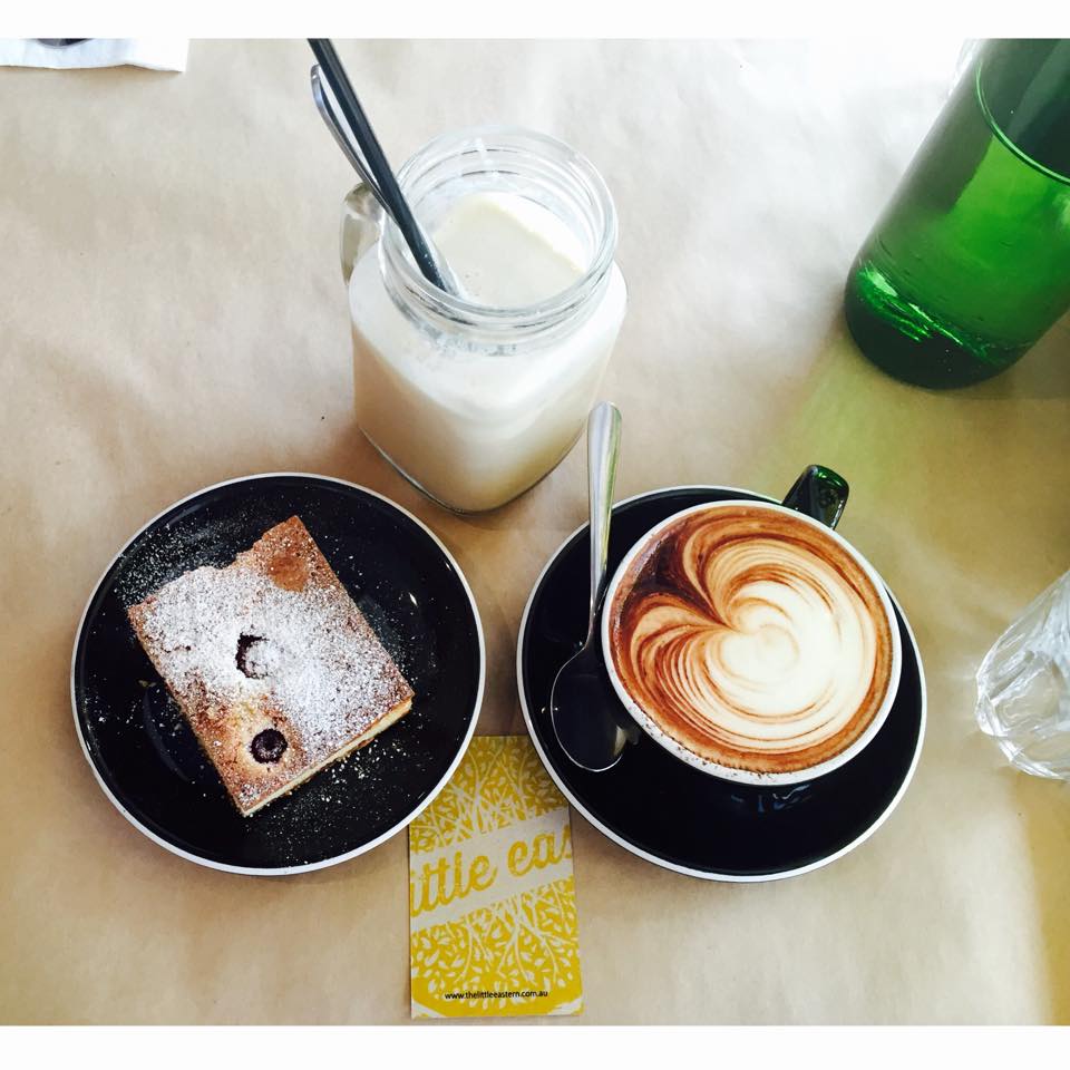 firstly, the little eastern do all day breakfast! winning. I chose smashed avocado ‘avocado & danish fetta smash on toasted sourdough rye with fresh mint, zataar & a zesty lemon dressing’ $11.50, plus an added poached egg for $1.50. and let me tell you that this was such a fresh and flavoursome meal, I was really happy with it! My soy cap was delicious and made into a heart. $3.50 for standard milk coffee + $1 for soy milk. bit steep for a regular size. C had an iced coffee $5.50, she said it tasted like milk.. and a white choc & berry brownie which was very yummy.